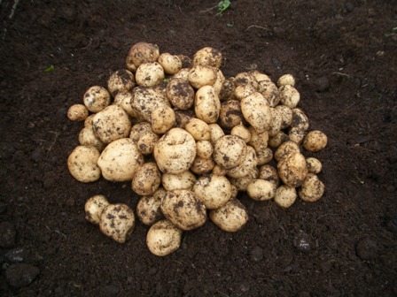 ジャガイモを掘り出すと色白の皮の薄いものが