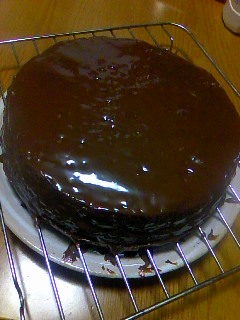 ホントは明日食べてアップする予定だったんだけど、総長が早くしろって(笑)試しに一切れカットしてみました♪これねぇ、ココアスポンジじゃなくて、チョコ生地なんだよ!(b^ー°)コーティングも含め、使ったチョコ280グラム!ホテルのシェフのおすすめレシピです(≧∇≦)手間をかけて焼いたザッハトルテ♪こうやってお店のように乾燥防止のビニールタイまいて、アルミシートに乗せたら、ますます美味しそう(≧∇≦)さて、食べてみますか?冷やしてないからコーティングチョコが完全に固まってないけど、お口にはチョコが広がる(⌒~⌒)アプリコットジャムにほんのりブランデー入れたのも効いてるわ♪いやーん(≧∇≦)美味しいじゃん!チョコ好きにはたまらないケーキですわ♪どうしよう(^_^;)とまらないp(´⌒`q)食べたいひと~
