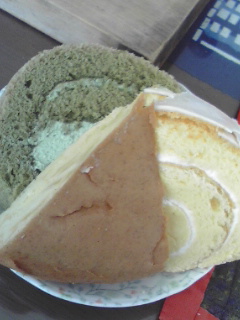 今日は叔父さんの家に上がり込んでおやつタイム!(b^ー°)叔父さんにコーヒーを淹れて貰ってる間に勝手に他の従妹達に電話して全員集合させた♪ロールケーキ2本は、ふみりんの手土産、りんごケーキはみみすけの手作り、キャラメルバニラアイスは義妹のお母様の手土産o(`▽´)oロールケーキはホワイトチョコのかかってる、クリスピーロールが美味しかったなぁ(≧∇≦)抹茶のロールケーキは普通に抹茶だった(笑)りんごケーキは、作った本人曰く「砂糖入れてないから、甘さが足らないかも・・・」と少々遠慮気味ヾ(〃^∇^)ノホットケーキミックスにバターと牛乳とリンゴを混ぜて、炊飯器で焼いたらしいが、砂糖が全く入ってないのにマジで美味しかった!(b^ー°)みみすけ、珍しく頑張ったなり~(笑)「お姉ちゃん、又ブログに載せる気?載せるなら味の評論もちゃんと入れてね!」との、みみすけのリクエストにしっかり応えました(`∇´ゞ仕上げがキャラメルバニラアイス♪牧場での手作りアイスなんだけど、アッサリしてるのに、しっかりとミルクのコクがあって、キャラメルも主張し過ぎる事無くミルクと共存してた(≧∇≦)ああ、幸せなおやつタイム☆ъ(*゜ー^)>昨日と一昨日のシュークリームの仇を取ったわγ(▽´ )ツヾ( `▽)ゞ