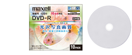 最近のメディアってすごいね自宅で保管しているものの大半は白い一般的なホワイトプリンタブルディスク。最近発売されてる光沢写真画質のメディアを試してみました一般的なプリンタブルディスクとの違いを説明させていただきましょう。今回実験したのはmaxellの録画用120分 16倍速対応DVD-Rで、CPRM対応なので地デジ録画もOK内径も21ミリまで印刷可能だから、自作ラベルの画像もたっぷり印刷できますさらに、このメディアは耐水・耐湿で印刷長持ち耐水ってのはよく見るけど、耐湿は初めてホントかな?って事で印刷・耐水・耐湿実験してみましたまずは今までのメディアと全く同じように印刷。解りにくいかな?左がmaxellの光沢写真画質で、右が普通のホワイトプリンタブル。左は色合いも元画像そのまま鮮やかに印刷されてる右は人物の顔が白っぽくなったり、ライトの色合いが違ったりしてる。並べて見比べると、よ~く解った続いて光沢性は、話にならない光沢写真画質の素晴らしいこと艶もあって最高だ最初は印刷面にメーカーロゴが入ってるのが気になったんだけど、印刷するとほとんど解らない!光に当てると反射して見える位かな?ホワイトブルの方はくっきりとロゴが見える・・・せっかく耐水・耐湿で印刷長持ちって書いてるんだから、試してみる?2つのメディアをコースター代わりに・・・水滴の付いてるグラスを5分置いてみた。maxell写真画質の方は水をふき取っても全く変わらず、印刷面のにじみも無い対するホワイトプリンタブルの方は見るも無残にインクは滲み、ティッシュにインクが移った耐湿実験は、寒い場所から暖かいお部屋に移動したことを想定して、冷凍室に1時間入れてみて、ファンヒーターの前に置いてみた。写真画質メディア、全く滲まずそのままの光沢を維持これには驚いた印刷して10秒もするときれいに乾き、全く手にも付かないし、写真画質メディア最高これ、いつまでも大切に保存しておきたいDVDには絶対お勧め安心な日本製、標準価格は3280円。安いところだと2580円位。絶対直ぐに買いだよね ID:100210-DRD120WPPC.50SP-1