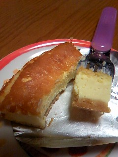 昨日、夕方になっていつもザリガニ釣りに誘いに来る近所のチビッコ達が「遊ぼー」ってお誘いに来た(゜o゜;)寒いから、なみっぺ独りを犠牲にして、私はおやつ作ることにした(笑)前から頼まれてたチーズケーキ、クリームチーズと生クリームはある♪作り始めて、ビスケットが無いことに気が付いた^_^;うーん(・_・)バタークッキーがあるから、これで代用!(b^ー°)オーブンで焼き始めたら、何と、バナナケーキがいい!って言われた(。´Д⊂)仕方ないからチーズケーキはそのまま焼いて、炊飯器でバナナケーキを作成( ̄∀ ̄)焼きたて熱々バナナケーキを持って行ってあげた♪チーズケーキは今日の私のおやつ(≧∇≦)6個は先ほどなみっぺが英語レッスンに持って行きました(^ ^)材料誤魔化したのに、美味し~い♪腕がいいのか、クリームチーズが美味しいのか(笑)マジ美味しくて、自画自賛(爆)食べてみる?