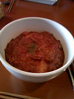 昨日は朝からお習字の先生とお出かけ(*^_^*)福袋の予約を済ませ、ランチへGO!(b^ー°)以前立ち寄って感動したお店に行ってきました。お気に入りの席に行こうとしたら女性スタッフに「すみませんがそちらは大人数用なので、こちらに座って下さい」と笑顔も無しに言われた(゜∀゜;ノ)ノちょっとトーンダウン前回はプレートランチを頼んだので、今回はシェフお任せ丼ランチにしてみました( ̄∀ ̄)ハヤシライス丼にリンゴ酢ドレッシングのサラダにオニオンスープ付き!(b^ー°)オニオンスープは玉ねぎの甘味がしっかり出てて美味しかったよ(≧∇≦)ハヤシライスは正直私が作った方が美味しい(笑)デザートは「パティシエパン君お手製ケーキセット」前回のバナナパウンドケーキ、美味しかったなあo(≧v≦)o今日は何だろう?全く食べ終わった食器も下げて貰えないまま、デザートが来た。目の前でケーキセットを置きながら食器を重ねられた。美味しいランチを美味しく頂きたかったのに、何だか雰囲気が良く無かったので、先生も「前の感動が全くないね( 。-_-。)」と、ポツリスタッフも笑顔一つ無く、これでは全くくつろげず(^_^;)前回来たときのスタッフは最高だった(*^_^*)途中寄ってくれてドレッシングや味付けの説明をしてくれ、お皿が空いたらスーッと来て下げてくれ、コーヒーのオーダーに対しては「今から豆をひきますから、少しお時間下さいね。ゆっくりお話を楽しんでて下さい。」って言ってくれたし。帰り際、「ありがとうごさいました」無表情だったよね(#・∀・)もう、行きませーん(笑)美味しく頂くためにスタッフの方も気を付けて頂きたい。私も気を付けよう^^;