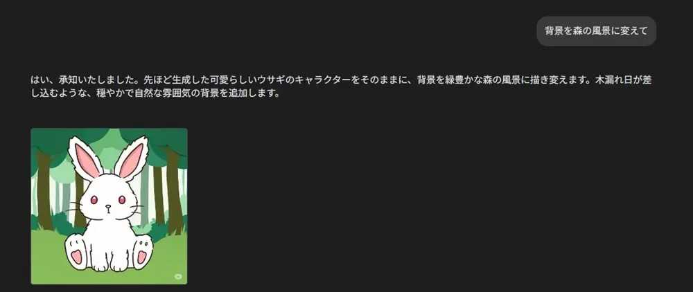 プロンプト:背景を森の風景に変えて