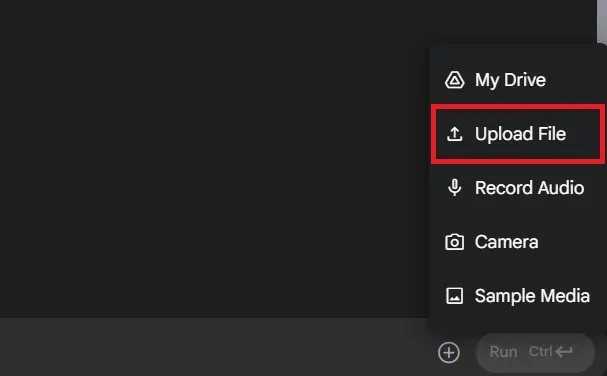 プロンプトの入力箇所の横にある「+」を押して「Upload File」を選び、編集したい画像をアップロードします。