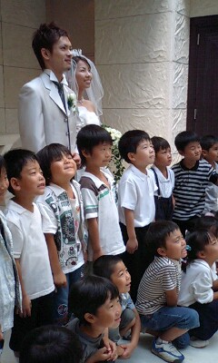 28日(土)は、おうまっくすの先生の結婚式がありました。大きな通りを走っていると、突如現れるやしの木に囲まれた西欧風の建物今時の結婚式場ってすごいのねぇ~先生もいつもはジャージ姿で暴れん坊が多いおうまっくす達を相手に毎日奮闘している・・・って感じなのに昨日の先生はとぉ~ってもキレイでした。クラスのほとんどの子が来ていたんだけど、式場側でもちゃんと保育園の子達と写真を撮る時間を作ってくれたり人前式に参列させてくれたり・・・大変だったと思うけど嬉しかったです旦那さんになる人はやかましい子供たちを見て唖然・・・って感じだったけどでも子供たちにとっても、いい経験ができたと思う。もちろんさわぞ~も連れてったんだけど、帰りのの中で、”お父さんとお母さんは何で結婚しちゃったの~”なんて聞かれちゃって”なんでだろうねぇ~”って答えつつ、真剣に”なんでだろう・・・”って考えちゃった女の子はおませちゃんだから突然そんな質問してきて、こっちが焦っちゃうよそてにしても、いつ見ても結婚式っていいよねぇ~私たちの時はチャペルから出てきた時にフラワーシャワーとしゃぼん玉だったけど、昨日のは『羽根』だよ。白い羽根。ちゃんとリボンもついてる、ふわふわの羽毛だよ・・・最後に子供たちがその羽根を拾い集める姿がまたかわいいやら面白いやらで・・・かずちゃんは仕事で行けなかったので3人だけ、とっても幸せな気持ちになった一日でした。