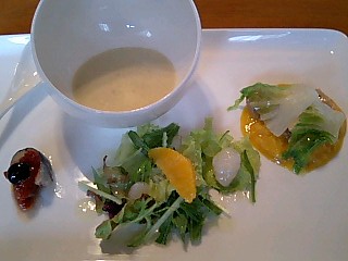 ・・・といっても、今日ではなくてこの前の水曜日にかずちゃんと行ってきました地元トークになりますが・・・いつも行くスーパーの近くにある【ぷちリッチ】というお店。欧風薬膳料理・・・って言うからひと癖ある漢方を使ったようなお料理かと思ったらぜんぜん違いました私たちが普段使っている食材などでそれぞれの効能を生かして今月のテーマに沿ったお料理を提供してくれるんです。12月は【腎臓】に優しいお料理ですかずちゃんは『ふつうのパスタコース』 1,500円私は『あなたのための薬膳ビーフシチュー』 1,700円それぞれ、食後のデザートとカプチーノor紅茶つき!これから忘年会とか多くなって腎臓・肝臓の負担が大きくなるシーズン。そういう私も前日は忘年会で久々に飲みすぎて胃が・・・気持ち悪いこんな私の内臓クンたちを救ってくれるようなおいし~お料理でした最初に食前茶として『はちみつ大根茶』が出てきました。まろやかな味でとても飲みやすいお茶です♪まずは前菜。さつまいものスープさんまのトマトソース(黒豆のせ)水菜と帆立とオレンジのサラダ白菜と筍の半熟玉子ソース続いてメイン。薬膳ビーフシチュー温野菜のブラックペッパーがけ (かぼちゃ・ブロッコリー・パプリカ・ヤングコーン)プチパン最後にデザート。りんごのキャラメルソースブルーベリーとマロンクリームのミルクレープライチのラズベリーソース紅茶おまけに、お店で出しているという2種類の『シフォンケーキ』を試食させてくれました。ごまタイプとミルクティタイプ。砂糖やクリームを使っていないんだけど自然な甘みがあって、ふわふわでおいし~~~しかも・・・にがりが入っているから脂肪を排出してくれるダイエットしていて甘いものが食べれない~~っていう方にはオススメ1ホール1300円 ハーフ700円 でお値段もお手頃冷凍保存も可能だって!静岡県西部地区にお住いで、体調を気にされている方なんかはぜひ一度行ってみてはどうでしょうティータイムにケーキセットを頼むと薬膳料理・食材についてなど相談にのってくれるそうですよ