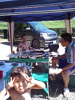 今日は朝から全市一斉美化活動がありおうまっくすも朝8時から草取りに参加しました。出かける前には、草取りの道具が気に入らないと高枝切りバサミを持って行きたい・・・と言い出して10分ほどぐずり、遅刻して参加しました。参加した人は参加証が出るので、それを小学校へ提出するため絶対に行かなくちゃいけない事でした。草取りするより、虫を見つけては大はしゃぎしていて、全然作業していないお母さんはかなりお怒りモードのまま作業を続け、1時間ほどで終了しました。帰ってからは、エアコンの効いた部屋でゆっくりおくつろぎ。2階の部屋に行くといい風も吹いていたので、ついうとうととお昼寝までしちゃいました夕方からは美化活動の打ち上げも兼ねて地区でバーベキューがありました。公会堂を使って、子供たちが集まり大騒ぎ走り回ったり、かくれんぼみたいなのしたり夏休みに入って、久しぶりに会ったせいもあってか手も付けられないほどの、暴れっぷりでした。バーベキューの中で、流しそうめんがありました。手前から3人目がおうまっくす。下の方にいればいるほど、賢いというか・・・災害とかあっても、最後まで食いっぱぐれない奴らというか・・・とにかく、流しそうめんを楽しむのではなくきっちり食べれることを優先している部類におうまっくすはしっかり入っていましたちゃっかり者です。。。明日は野球塾の練習試合もあるしはしゃぎ過ぎってこともあり、ちょっと早めに引き上げ。夏休みの宿題も途中だったので、ブツブツ文句言いながら、なんとか終了。明日も暑くなりそうだけどお父さんも有給とって連れて行くわけだからおうまっくすにも頑張って欲しい。本人も、明日の練習試合には勝ちたいって言ってたので、やる気はあるらしい。また、結果報告します