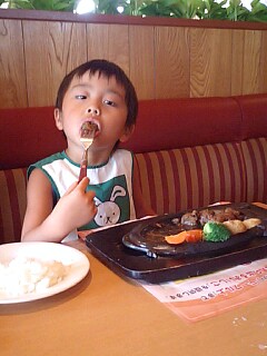 実は23日はお母さんの誕生日だったのですが・・・まったく誰も何も無いまま終わってしまったのです。まぁ30歳を過ぎてしまえば、今さら何もメデタクは無いのでこのまま触れないでおきましょう今週末はこれといった計画も無く、ただゆるゆると。土曜日のランチは、長澤まさみがメントレで紹介した『さわやか』に行ってきました。これはおうまっくすが行きたい!!っていうから連れて行ったんだけど、今までお子様セットだったおうまっくすもついに『おにぎりハンバーグ』デビューです ・・・といっても、本人はお父さんと一緒の『げんこつハンバーグ』だと思ってるんだけどさわぞ~も一緒のものをほしがってダダこねましたがどう頑張っても食べきれないのでなだめた挙句、『お子様ゴーゴー』に決定まったく、気難しいお嬢様の扱いは大変だわ・・・おうまっくすも、ライスをかずちゃんに半分食べてもらったけど結局全部食べちゃいましたもう大人並みの食欲という5歳児ですおうまっくす家の食費が・・・かずちゃんも私も頑張って働かねば日曜日にはお母さんの会社の近くにある公園のプールへ行ってきました。おうまっくすは深いプールに行きたいんだけどさわぞ~は浅いプールじゃないと入れないからかずちゃんは2人の子供を連れてあっちこっちへウロウロ・・・お母さんは、日陰から見てるだけです1時間半くらいそのプールにいたんだけど噂では汚くて、外人が多い・・・って聞いてた割にはキレイで日曜日でも空いてたしって感じでした。また来たいと思ったけど、今年は8月末で終わりだって。来年はもっと早くから遊びにこよう家で水着に着替えて、そのまま連れて来て5分以内で着くってのがいいよね♪うちに帰ってお昼を食べたら、一家みんなでお昼寝ぐっすり2時間半も寝てしまった今週末は、お母さんもバドミントンに行ってきたり家族みんながリフレッシュしたいい週末だったんじゃないかなかずちゃんはイマイチだったかも知れないけどねまぁそれはそれでガンバレお父さんってことで