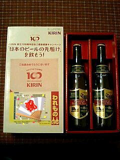 またしても『KIRIN』さんの懸賞が当たりました前にも【勝ち樽・勝ちT・・・】の時に、【勝ち樽】を当てましたがまたしてもココで運を使ってしまいましたたまたま昨日も仕事で留守だったので宅急便やさんが母屋(だんな様の実家)に届けてくれたんだけど、どうやらじいじもウチのだんな様の名前を使って同じ懸賞を応募していたようでじいじが当選したのか、ウチが当選したのか・・・って事で、だんな様の仕事中に確認のがきたみたい。でもウチの宛先を見ると、送ったハガキをコピーしてあったから書いてある字が私の字だったので結局、ウチが当選したということになりじいじ達にとってはちょっと糠喜びになっちゃいましたスイマセン・・・じいじ達の方が圧倒的に消費量が多いのにたまたま3枚出したウチの方が当選するなんて大手を振って喜ぶことができませんでしたさて、このビールは『お花見』でも計画してみんなで味わってみようかななぁ~んて思ってます