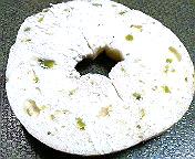 きょうのベーグルは抹茶ホワイトチョコベーグルです~♪ 抹茶生地はちょっとだけ渋味があるのですがホワイトチョコがた~っぷり入っているのであまり気になりません。というか甘味のほうが勝っていて甘いもの、とくにホワイトチョコ好きには嬉しいタイプ