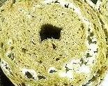 ミシェルズベーグルさんのセレアル・オランジェベーグルです~♪ オーツ麦、ひまわり種、亜麻仁、胡麻などの雑穀を加えた生地にオレンジピールが練り込んであります。なんだかヘルシーな感じ。オレンジピールは少なめのような気がするのだけど味はしっかり出ています。モチモチしてて美味しいことは美味しいけど雑穀もオレンジピールもそんなに好きなわけではないのでこれからは買わないかも・・・