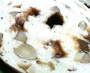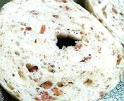 ユウコさんの作られたベーグル こちらも最後のひとつになってしまいました。キャラメルベーグルです~♪ キャラメルベーグルという名前でしたがキャラメルだけでなくアーモンドまでゴロゴロはいってます。生地はむぎゅっと詰まった感じで噛みごたえあり!あま~いキャラメルを想像していましたがちょっとほろ苦い感じで大人っぽいキャラメルベーグルでした。