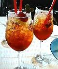 オチェーアノでのランチで出されたパンは3種類。説明されたのだけど忘れてしまったので(聞いてない?)くわしいことは分かりません。白パン、バケット、いちじくのハードパンです。バケットはすこし酸味があったかな・・・わたしは白パンが好みだったので1コ追加でいただきました♪左に写っているのがスペシャルノンアルコールカクテル お土産にコレクタブルグラスが付いてます。可愛いけどこのグラスの形ではあまり使い道がないかなぁという感じ。
