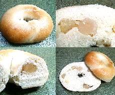 ブラウニーベーグルズさんのチーズベーグルです~♪きのう食べたナッツベーグルさんのものに比べて目が詰まっています。生地のなかに入ってる角切りチーズは少ないみたい・・・すこしハードな噛みごたえ。でもモチモチしてるという感じかな?