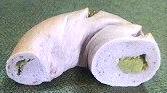 mama's hands さんの紫芋極みずんだベーグルです~♪ ほんのり紫色した生地のなかにずんだ餡がたっぷり。やっぱり紫芋の味というのは分かりませんがこの餡がとっても美味しくてお気に入りになりました。皮がサクサクしているのも