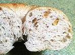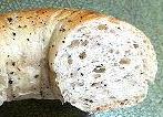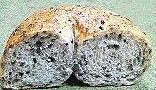 KARIN bagel さんの黒ゴマお豆ベーグルです~♪外から見ただけでは胡麻ベーグルみたい。でも半分に切ってみると想像以上にたっぷりの豆が入っていて嬉しい。(材料をみると、黒豆、うぐいす豆、鹿の子大納言、赤エンドウ豆)たっぷりの胡麻を練りこんだ生地はとても香ばしくてパリパリッなんだか胡麻せんべいを食べているよう そして、お豆さんたちの甘味がやさしい感じでとても美味しいです。今回のKARINさんではかなりのお気に入りとなりました。