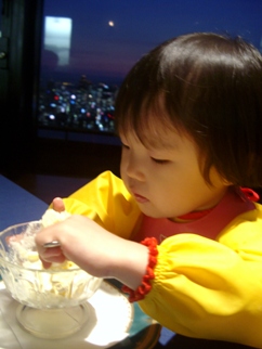 今日は私の誕生日でした。朝起きるとパパからのかわいいバースデーカードが食卓の上にあり素敵なメッセージがありました。パパは結婚してから毎年素敵なカードをくれます。ありがとう!そしてパソコンを開くとメールの数がすごい。何で?と思ったら友達などからのお誕生日おめでとうメールでした。海外のお友達も送ってくれてうれしかったです。海外の友達は楽天のグリーティングカードでした。日中も携帯にメールやカードが届きみんな覚えてくれてありがとう!と思いました。実家の父もパソコンにメールでメッセージをくれました。今日は実家の母が大阪で歯の治療でうちにケーキなどを持ってきてくれました。パパは東京に出張だったので娘と3人で食事に行くことになりました。出かけ先のお店ですごく軽くていい旅行バッグがあったので母が誕生日プレゼントで買ってくれました。やったー!!夜は眺めの良い窓際の最上階で食事をしました。夕方で夕日が山の向こうに沈む様子と空がピンクで綺麗でした。そして夜景が美しかったです。娘は「もっと!」とか「すごい!」「綺麗」とか運ばれてくる料理などに感想を言うのでお店の人やお隣のテーブルの方たちに笑われていました。途中怖い怖いと子供用の椅子から飛び降りようと何度もして大変でした。そして立ったままお隣に向かってくるくると回って両手を挙げてポーズをとって見せたり接待で利用していると思われるビジネスマンの席をじーっと遠くから覗いてみたりお店の人になでてもらったら「怖い!」と叫んで逃げたり。大変でした。途中座っていて怖いと恐ろしがる意味がわかりました。窓の夜景が高層ビルが立ち並び怖いと思っていたら窓に従業員の方が通るのが映るたび空中に浮かぶオバケに見えていたようです。一件落着でした。娘はやはり左利きのようです。 とを持っていくとお出かけのお洋服を汚さず食べられて安心です。食後はお隣のテーブルの方にご挨拶して帰りました。夜は主人の母が「おめでとう!」の電話とプレゼントがあるよ。と明日いただきに行くことになりました。何かな?今日はたくさんの人から祝福されてうれしい一日でした。★★★言うのを忘れていたというか今気づきました。★★★実家の母へ ○○年前私を産んでくれてありがとう!そして今日はプレゼントと晩御飯ご馳走様でした。