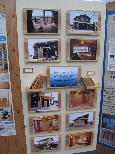 こんばんわいきなり三日坊主の岡部です。 先日行われたげんぼく夏まつり驚くほど大勢のお客さんで本当に大盛況でした。 っで例の担い手パネルこれがうちのやつ。 杉の構造用合板に和紙クロス(贅沢にも下地に荒い粒(ケナフ)入りのを貼ってその上に竹の繊維入りのを重ね張りするという裏ワザ仕様)を貼り、その上に少し浮かした杉板を仕込んで写真を貼ってあります。この少し浮かすってのがみそなのですが画像では少しわかりづらいですね。時間もなかったし、あえて写真の展示だけにしたのですが、どのように感じてもらえたのでしょうか?まぁ、私が見ていた間はパネルを観ている人は同業の方々がほとんどでしたが。40枚ほど展示されている中で目を引いたのはこれ!!!。いい感じです!!!。そして手づくり感いっぱい、メッセージいっぱいのこれやはり人柄がにじみます。次回がたのしみです。 そして 長~っかった夏休みも今日で終わり、明日からは我が家も落ち着きを取り戻すことを期待します。子どもたちは今年の夏どのように成長したのでしょうか。私のおなかはずいぶん大きくなったのですが・・・。 では、また。