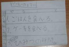 時間があると、ついコタツに向かってしまう今日この頃・・・ブログの更新も途絶えがちですもう2週間近く経ってしまいましたが、1/18は私のお誕生日でした~「この歳になると誕生日はうれしくない」なんて言葉もよく聞きますが、私はけっこう楽しみだし、うれしいでーす・・・と言うのも、去年から始まった我が家のうれしい決まりごと・・・私のお誕生日会は、夫と娘で夕食を作ってくれるのイベント好きの娘が大張り切りで、お正月が終わるや否や、おかあさんのお誕生日モード突入巻き込まれた夫はちょっと困り気味でしたが・・・誕生日当日は平日なので、前日の日曜日にやることになり、娘から案内が渡されました。お買い物も2人で行ってくれるので、休日の午後、私は家でのんびり過ごせるのです悪戦苦闘2時間で、作ってくれたお料理はこの3つ枝豆、コーン、ハムのかき揚げ豚ヒレ肉のソテー オレンジソース添え焼き長芋そぼろあんかけ3つともフライパンを使う料理だったので、段取りが大変だったみたい面倒な物を、オレンジページを見ながら作ってくれた夫に、感謝、感謝娘は、簡単なものを切ったり、レシピを見るのを手伝ったりして、大はしゃぎでした。「さあごはんを食べよう」というところで、炊飯器の時計が狂っていて、ごはんが全然炊けていないというアクシデントが発生我が家の炊飯器は10年ものなので、時計の電池が弱ってきちゃったみたいで・・・私はわかっているので、タイマーを使う時は時計を合わせてからセットするの。。。ちょっとびっくりでしたが、ちょうど焼き立てのパンもあったので、そちらを食べました。ワインとごはんの組み合わせは変だから、かえってよかった~プレゼントは娘からのカード食事の後は、私の名前入りケーキ(ケーキ屋さんで書いてもらったみたい)を食べて、その後のお楽しみは夫&娘からの歌のプレゼント。「Believe」を夫がギターで伴奏、娘が歌ってくれました。毎晩、夕食後2人で二階に上がって練習していたのが、下にいても丸聞こえ~(小さな家ですから・・・)でも、娘は内緒で練習していたつもりらしく、「ねえ、びっくりした~」と言っててかわいかったです(「Believe」は嵐の曲ではなく「たとえば君が傷ついて~」のほう。去年卒業生を送る会で歌って覚えたらしい。)慣れない料理を一生懸命作ってくれる夫と、私を喜ばせようと頑張ってる娘。ちょっとウルウルしちゃうHAPPYな誕生日でした。