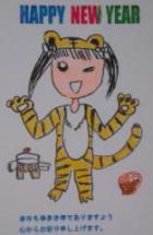 新年 明けましておめでとうございますお正月は実家に行ってのんびりしてました。もう5日ですが・・・今年もよろしくお願いします娘:絵、夫:製作、の年賀状毎年、娘をおだてて絵を描かせるのが一苦労。でも、それが私の役目なので頑張ってます夫は、宛名の印刷&娘が書いた絵をコピーしたりしてプリントゴッコで年賀状をペタンコ。とっても助かってますそして、私が作った羊毛フェルトのトラさん。これも毎年、年末になるとコタツに入り、チクチクとやってます。娘に「どんなトラにしようかなぁ~」と聞いたら、広告の裏に案を考えて描いてくれました。この羊毛フェルトのトラさんは、実家に持っていって飾ってます。