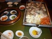 グルーポンのクーポンを買ったので、西調布にある 韓国家庭料理 大長今(デジャングム)に行ってきました。今回のクーポンは、2人分で1枚。通常5440円2700円さらに500円割引チケットを利用して2200円■サムギョプサルセット/2人分 サンチュ・ネギサラダ・にんにく付き。■海鮮チヂミ ■白菜キムチ ■ライス/2人分 ■ドリンク1杯/2人分初めて西調布駅で降りたけど・・・わかりにくい~大雑把な地図しか持っていなかったので、迷子になりかけました。暗い道にポツンとあるお店。なんだかとーっても入りづらいです小さいビルの2階に上がっていき、お店に入ってみる。わりと広い店内。しかしお客さんは他にはいないクーポンは2人分だけど、家族3人で行ったので、子供用にジュースを1杯だけ追加し、様子を見ることに。サムギョプサルというのは豚バラ肉の焼肉で、かなり斜めになっている鉄板で焼きます。下に油受け小皿が置いてあって、鉄板の傾斜で、たらりたらりと油がそこに落ちていくの。こんなの初めて見たよくわからないけど、テーブルの上には、野菜などいろいろなものがどんどん置かれていきます。セットに入っているみたい豚バラ肉に、みそをつけて、キムチをはさんで、サンチュで巻いて食べます。その他の野菜もたくさんあって、けっきょく何も追加しなくても、おなかいっぱいになりました。そこそこおいしかったけど、家からすごく近いわけでもないし。生ビール付きで、1人1100円は破格だけど、もし定価だったら、絶対行かないかなぁ~