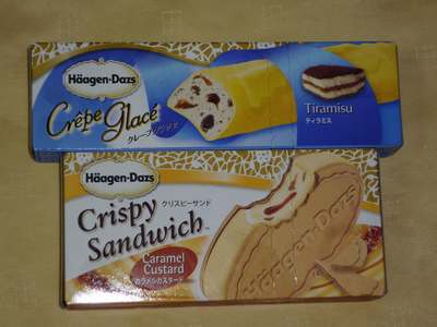 クレープグラッセのほうはこの前タメしたけど・・・クリスピーサンドが食べたくて、またタメしちゃいましたクリスピーサンド、超美味しいですウエハースがサックサクなんでしっとりしちゃわないんだろう?と思ったら、アイスとウエハースの間にチョコのコーティングがあるんですね。ハーゲンダッツ、技術力すごいわカスタードアイスも卵っぽい味がいい~。とっても気に入りました他の味も是非食べてみたいですまた、タメせるといいな~
