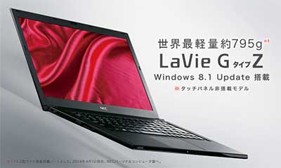 NECのノートパソコンです! Windows 8.1 CPU 第4世代 インテル Core i7 メモリ 4GB SSD 約256GB Office Personal Premium プラス楽天スーパーDEAL対象商品 30%ポイントバック 56,862ポイントバック!後ほど!2014年秋冬モデル LaVie G タイプZスペック OS Windows 8.1 Update CPU 第4世代 インテル Core i7-4510U プロセッサー(2.00GHz) メモリ 4GB (オンボード 4GB×1) / 最大4GB SSD 約256GB(Serial ATA) DVD/CDドライブ なし(必要な方は別途購入が必要です) ディスプレイ 13.3型ワイド IGZO液晶 (WQHD 2560x1440ドット) 有線LAN なし ワイヤレスLAN 11ac対応ワイヤレスLAN (IEEE802.11ac/a/b/g/n準拠) Bluetooth Bluetooth テクノロジー本体内蔵(Ver.4.0) 外部インターフェイス USB 3.0×2(内1ポートはパワーオフUSB充電機能付き) HDMI出力端子×1 SDメモリーカード(SDHCメモリーカード、SDXCメモリーカード)スロット×1 Webカメラ・マイク HD解像度(720p)対応カメラ (有効画素数92万画素)・ステレオマイク 内蔵 オフィスアプリ Office Personal Premium プラス Office365サービス1年パック バッテリ駆動時間 約5.4時間 (JEITA 2.0)/ 約9.2時間 (JEITA 1.0) 保証 1年間保証【楽天スーパーDEAL対象商品_30%ポイントバック】【Web限定モデル】NECノートパソコンLaVie Gタイプ Z(Core i7・Office付き・1年保証)(Windows8.1 Update)価格:189,540円(税込、送料込) NEC Direct楽天市場店のサイト