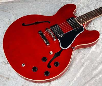 初頭の335を再現したカレントモデル Gibson Memphis ES-335 Dot Plain CherryES-335シリーズのスタンダード仕様。人気の60年代初頭の335をモチーフにした、ドットポジション・マーク、スリムネックと光沢のあるグロス・フィニッシュが特徴です。ピックアップには、ギブソンPAFの甘く枯れたトーンを再現した57クラッシックを搭載。ジャズ・フュージョンからブルース/ロックに至るまでジャンルを選ばず、幅広く表現します。また、テイルピースのスタッドボルトにロングタイプの物を採用。センターブロックからのボディ振動がダイレクトに伝わることで、サスティンの向上とトーンレンジの幅が広がりました。【2014年からの主な仕様変更点】■ロングスタッド&インサート(TonePros)テイルピースのスタッド、インサートとも、TonePros製ロング・タイプを採用。テイルピース部は、弦振動をボディにダイレクトに伝えるため、トーンに大きく影響を及ぼすパーツです。■Tone Pros ABR-1スタイル・ブリッジヴィンテージABR-1の代替品として人気の高いTonePros製ブリッジに変更。安定性、操作性がアップし、弦振動をボディにダイレクトに伝えます。■メンフィス・トーン・サーキット500Kオーディオテーパー(Aカーブ)・ポットと、独自にリファインしたトーン・サーキットにより、ダイナミックレンジ、レスポンスの向上を図っています。Gibson Memphis ES-335 Dot Plain Cherry S/N 11824711【G'CLUB TOKYO】【送料無料】【smtb-u】価格:265,000円(税込、送料込)G-CLUBのサイト
