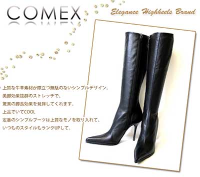 コメックスのロングブーツ・ハイヒールです。牛革でカラーはブラックです。滑らかな本革を使用しており、抜群の品質ならではの手触り。馴染みやすく、すぐに自分の脚にフィットする上質さはさすがCOMEX。ピンヒールも相まって、街を優雅な気分で歩けます。エレガントにもカジュアルにも使い回せるデザイン&上質な素材と丁寧な作りは、長くお履き頂ける1足としておすすめです。ブーツ COMEX ロングブーツ ハイヒールストレッチ ブラック コメックス (5116)【送料無料】【楽ギフ_包装】 靴価格:37,800円(税込、送料込)ハイヒール専門店 BE・MILANOのサイト