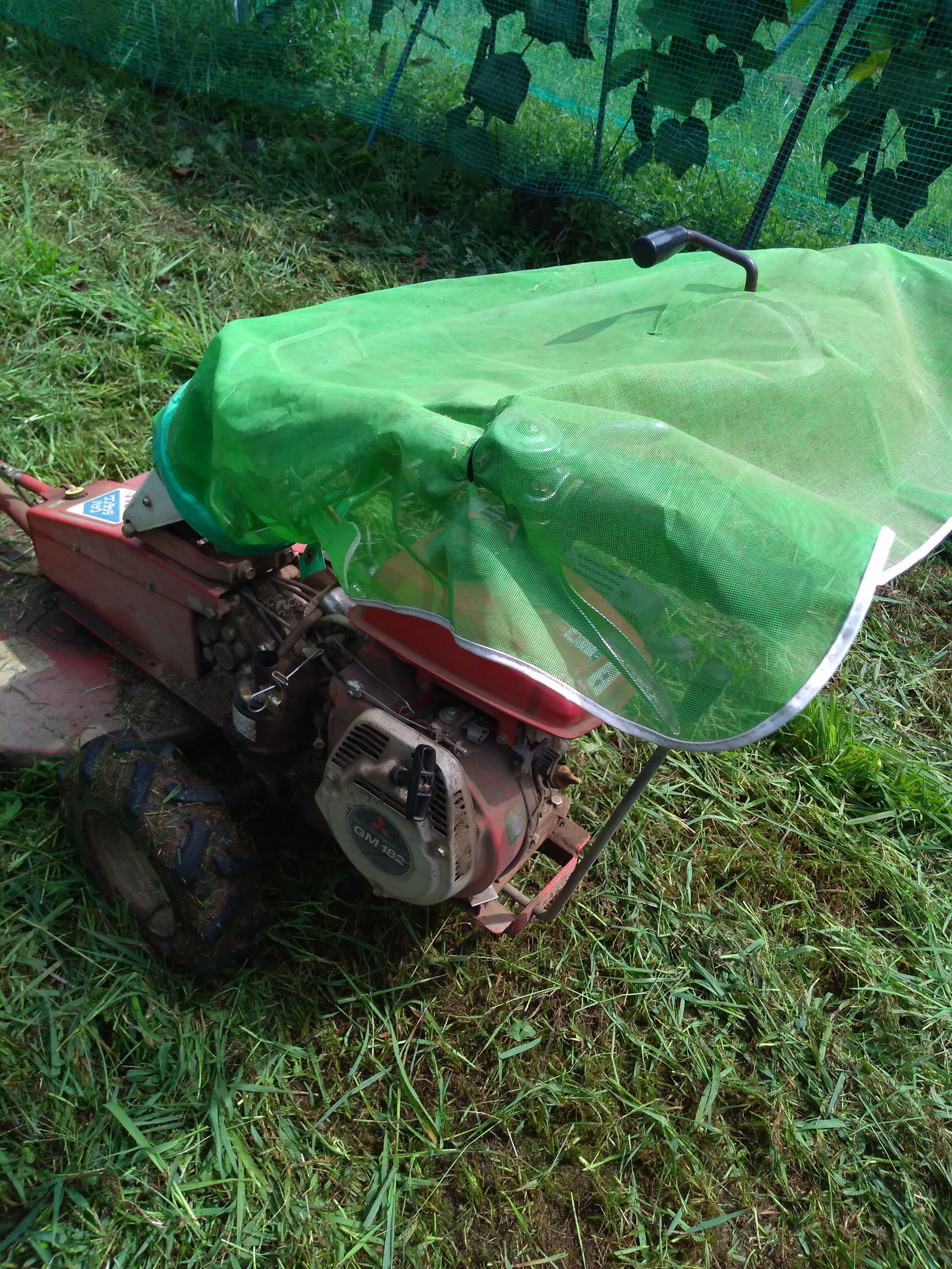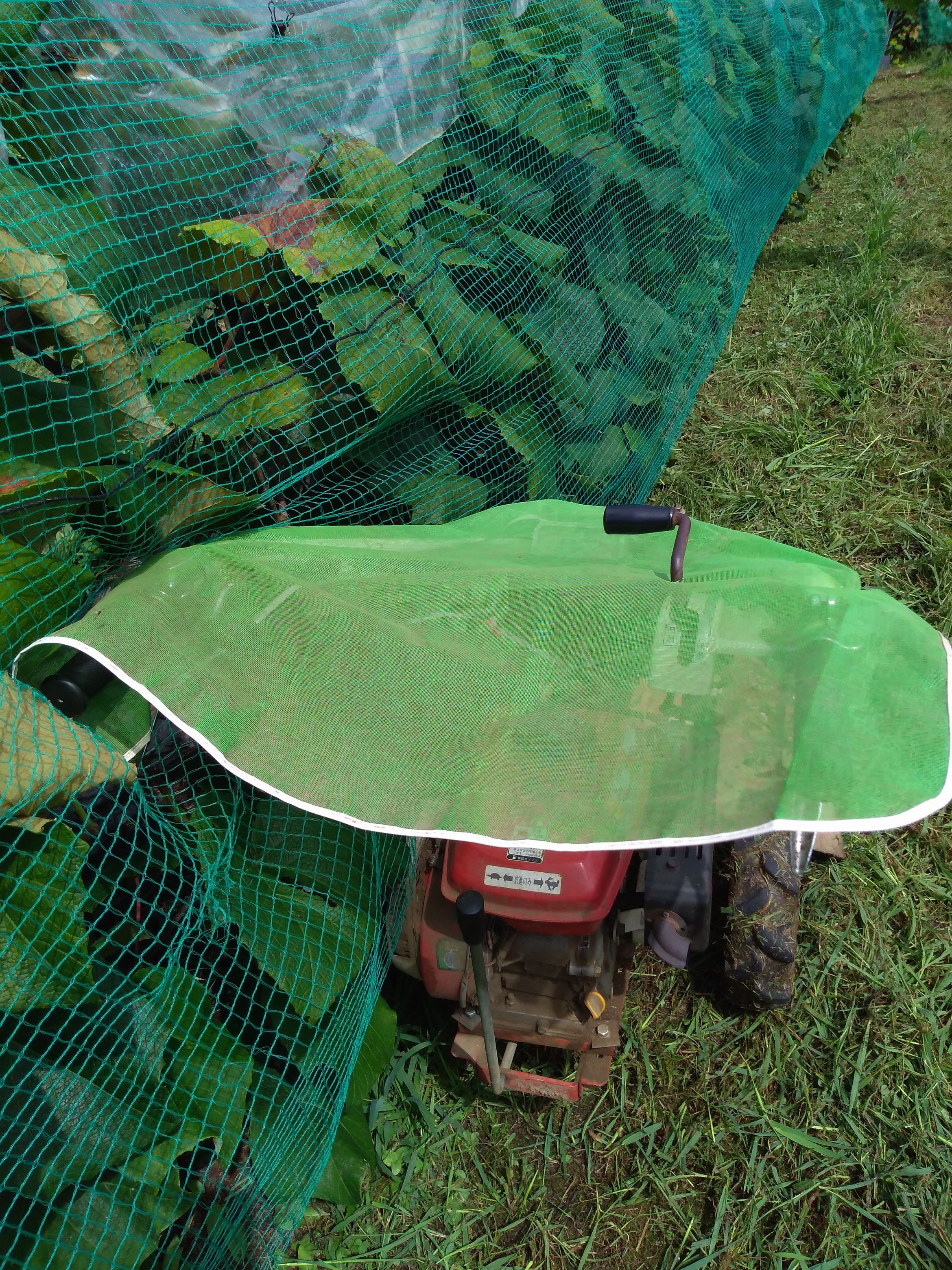 獣害(鹿)対策で垣根にネットを設置しましたが、オートモアーによる草刈りでネットがモアーに引っかかって垣根の脇まで刈込ができません。そこでモアー側にメッシュを取り付けました。