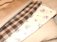 裁縫からすっかり遠ざかった今でもかわいい布を見つけては買う、というコレクター的反射買いはいまだに直りません。でも今回は目的ありの購入です。数日前地元で 布・雑貨・服を扱っているお店が移転オープンだったので朝からはりきって妹と行って来ました。オープン前は行列ができるほど!オーナーさんのセンスがいいのでこのお店はステキな布ばかり♪今回は新居のカーテン素材にとコットンリネンの布を大幅に購入!柔らくて縫いやすそうです。これにニュアンスを出そうと思って柄物もチョイス。まだ未定ですが^^コットンリネンは光を透かしてみると生成りの和紙の様だったので和室にいいんじゃないかと考え中です^^