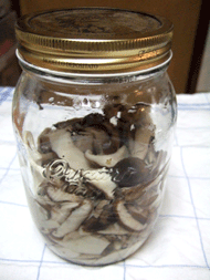 キノコって年中スーパーで売っているけどやっぱりこの時期キノコが旬。昨日はスーパーで安かったのでたくさんのキノコ類を買った♪というわけで買ってきたキノコを塩漬けに。なぜ塩漬けにするのか?というと保存が利くから。保存期間は一週間とレシピに書いてありました。ずいぶん前のLEEのオマケレシピに載っていました。やり方は簡単。キノコ(今回はシイタケ1Pシメジ2Pエリンギ2P)を沸騰した鍋で1分くらいさっと湯がく。ザルに取り出す。そのままキノコがホクホクの状態でビンへ入れる。ビンに入れたら塩大さじ1を加えスプーン等でざっとかき混ぜる。冷めるまで常温で置いて冷めたら冷蔵庫で保存。調理の際また加熱しないといけないと思いますがちょこちょこ料理に使えて多分重宝しますよ~。そういやエノキ入れるの忘れたなあ・・・