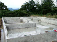 ★前から見る ★後ろから見る ★クローゼット(前中央) 10/3、コンクリートが打設されました。今週初めから天気は良くなかったものの作業の邪魔にならない程度にうまく雨が降ったようで現場はまずまず順調に進んでいます。養生に3日間置き、今日型枠を外す作業が行われました。そして、建前が来週末にはいけるだろうとのこと^^;ショコラの形が見えてくるまでもうひと息だなあ~ドキドキするw