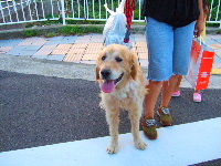 夕陽を見てからもうちょっと行くとお散歩中のお友達のワンコたちと遭遇♪コーギーちゃん2匹とゴールデンさん。。この子は7才。もうおじいちゃま?!。こちらで暮らすためについ最近徳島からやってきました♪よろしくね! 向かって左のはオンナノコ♪ 右はオトコノコ♪ シッポがあるコーギーもかわいいゾ! でも耳がおじぎしてるコーギーだってとってもかわいい!