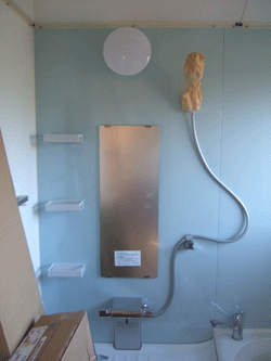 まだ未完成ですがお風呂場できてきました。TOTOのユニットバス。コチラ魔法びん浴槽です。6時間たってもお湯の温度が2℃しか下がらないという優れモノ。パネルは正面に薄いグリーンを。あとはホワイトに。シンプル&さわやかにしたくって。。。満足。 ステンドグラス登場ー♪廊下からリビングに入る引き戸の上に入れます。写真では人物の上の枠のところに、です。相当古いですコレ。ボロ。いいんです、。なんとなく大正ロマンっぽい?のが気に入ってる。設置箇所はすべて取り外し可能ですから。なんかあっても大丈夫っっ家の中に設置するステンドグラスは計4枚。アンティークもん。ヤフオクにて。 屋根裏へきました。こちらリビング方面を撮影。リビング上の梁が伸びてます。で、写真正面に空いてる枠部分にもステンドグラス入れる予定。ここには同じもの2枚設置します。リビングから見上げる格好です。このお部屋高さはないものの床は10畳以上ある。入り口部は天井低いけど中心で立てれます(私166cm)。屋根裏の空間っておもしろいです、なんかいい。収納スペース以外に旦那が自分の隠れ家にしたいというし。たしかに。あれは使わなきゃもったいないと思いました。 屋根裏のマドはこの二枚。家の真裏にあたります。ここから見る景色がいいんですよ~、。 どうです、きれいでしょう??^^*)我が家は山の上に建ってるようなものなので裏はこのように樹林の谷になっています。転がり落ちる危険性あり。フェンスは絶対必要です。裏はまだスペースがあるのでウッドデッキなんぞ考え中です。バイク小屋も裏にいく予定。あとシイタケ栽培するにいい環境なのでコレがたのしみ!ウハウハ!