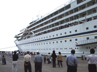 今日は豪華客船『飛鳥』が新宮港に入港していました。たまたま新宮方面へ走行中 港に大きな客船が入っているのが見えたのできゅうきょ見に行ってくることにした(。゚ω゚)♪めっちゃデカかったです!飛鳥は年に何度か来るんですよね。でもいいですね~ 一生に一回でいいからこんな客船に乗って旅してみたいなー。 旅費がすんっごい高そうだけどーーー!!!!(゚ロ゚ノ)ノ乗っていたお客さんたちの多くは年配の方でした、お金にも時間にも余裕があって・・ええ人生ですなぁ・・全くうらやましい限りです。まあ私の人生にはナイだろうなぁ