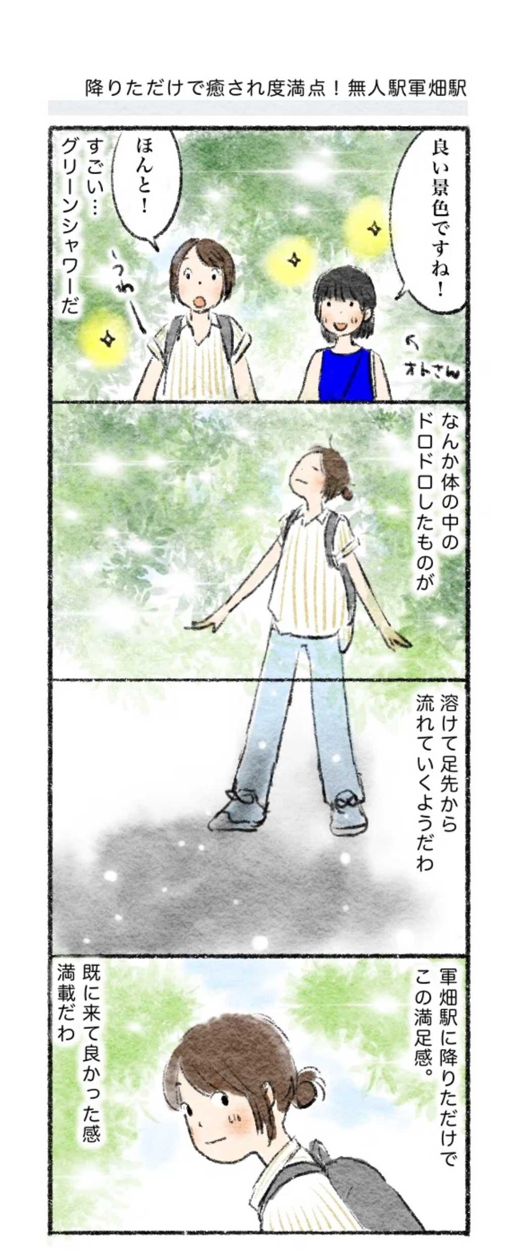 軍畑駅前だけで、かなり楽しめた。いいなぁ、ここ。#漫画が読めるハッシュタグ #マンガ #コミックエッセイ #漫画家 #漫画 #4コマ漫画 #軍畑 #青梅 #ハイキング