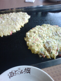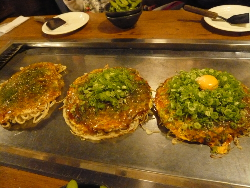 春休みは宿題もない、マーチングの練習もない、素晴らしいお休み♪そんな機会を逃すはずもなく、子ども二人を連れて飛行機に乗る。着いた先は、旦那の出張先「広島」!空港からバスに乗って、まずはホテルへ。ひと息ついて、旦那と合流して夕御飯。初日は、やっぱり広島焼き♪大阪のお好み焼きと違って、うどんかそば(やきそば)が生地の間に入ったボリュームたっぷりのもの。せっかくなので、どちらも頼み食べてみるけど、すぐにお腹がいっぱいに^^;青いネギがたっぷりかかっているのを見ると、西の方に来たな~と。甘いオタフクソースは美味しいけど、小麦粉好きな私は大阪の方が好みかな♪夕飯後は、近所を散歩をして早めに就寝。