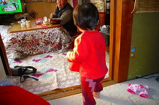 1、、2歩、なんとなく歩き始めていたユユ。 今日は、おばあちゃん家でお餅つきだった…