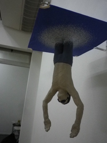 げー大ラグビーの盟友オーサキの個展昨日は夕方からオーサカへ相も変わらず阪急んこ電車歩いて行けるとこでやって欲しいのぅジャックナイフのスイマー実は紙の張り子木の塊から掘り出した洋上の潜水艦よぉ見ると?おお!ダイオーイカ食うリッチーマコー否マッコウパターンでいくと?波に翻弄される?違た天駆ける飛行機気流の中を行くインターセプトファイター雷電じゃったヤツのコンセプト誰もが知っている こと、もの から作品を作りたいと思っています。素材もできるだけ身近なもの、普通の人がさわった事があるものを使うようにしています。そういうものから、日常では感じられない感覚や認識を呼び起こしたいのです。美術という概念がいつごろからあるのかわかりませんが、その位置は、宗教や社会構造の変化に伴って変わってきたはずです。しかし何万何千年と消えずにあるのは、人が行きて行くがゆえの喜怒哀楽に寄り添ってあるからではないでしょうか。決して特殊なものではないはずです。私が作りたいものは、生活と宗教の間にあるものだと思います。 大崎信之残念ながら今日の17時までみんな老松町のギャラリーeyesへ急げ!ユナイテッドピープル基金 東北関東大震災 緊急支援クリック募金