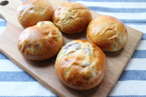 イーストで金時豆を入れたおやつパン♪ 前は6個に分割して焼いたらちょっと大きかったので今回は7個に分割。 お豆が少し表面に出るように成形したけど焼き上がったらそれほど見えてなくてちょっとガッカリ ^^;反対にお豆が出過ぎると焼いた時パン生地からはみ出てきてしまうので丸め方が難しいですね。焼き上がってから粗熱取れればお豆が見えてくるかも?って思ったらただシワになっただけ 笑 割って食べてみるとふんわり焼けてて美味しかったです(*^ω^*) ふたつのランキングに参加中です、応援クリックしていただけると嬉しいです☆にほんブログ村