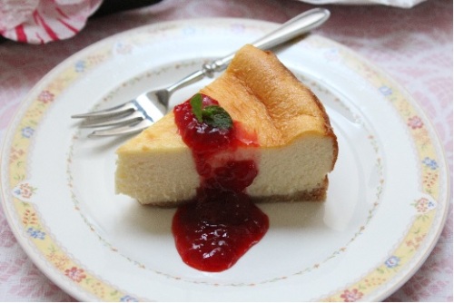 あけましておめでとうございます。今年もどうぞよろしくお願い致します。 お正月は旦那の実家、そして2日は妹の家に家族で新年のご挨拶へ行ったりとまともに自宅でお節を食べずにご馳走になってました 笑自宅のお節は毎年栗きんとん、紅白なますなど好きな物だけ作るという感じですね ^^; そして今年の初焼きはパンではなくチーズケーキ♪妹の家に行った時の手土産です。去年は焼く機会がなかったけど、我が家でいつも焼いているサワークリーム入りでNYチーズケーキほど濃厚ではないけどしっとりして食べやすいチーズケーキです。 焼き上がりはふわ~っと膨れてますが、 時間が経つと焼き縮んでどっしりしたケーキに♪ お味見用にはイチゴジャムをかけていただきました♪ ★★簡単!しっとりチーズケーキ★★★材料 18センチの丸型1台分(底の取れるもの) ◆市販のビスケット 80g◆無塩バター 40g(溶かしておく)・クリームチーズ 200g・サワークリーム 90g・お砂糖 80g・卵 2個・レモンの皮 1/2個分(摩り下ろしておく)・レモン汁 大さじ2・薄力粉 15g・生クリーム 200cc■準備 ・型に分量外のバターを塗っておきます。・クリームチーズをボールに入れてレンジ弱で1分くらい加熱して柔らかくしておきます。・オーブンを170度に温めます。 ★作り方1、ビスケットをビニール袋に入れて麺棒でたたき細かくしてから溶かしバターを入れます。 まとまったら型の底に入れ上からコップなどで押して平らにして冷蔵庫へ入れておきます。2、泡だて器でクリームチーズとサワークリームをよく混ぜてからお砂糖も加えてよく混ぜます。 溶いた卵を少しずつ加えその都度混ぜます。3、2にレモン汁、レモンの皮、振るった薄力粉の順に入れて混ぜ、最後に生クリームも加えて 混ぜ型に入れてオーブンで40~45分、竹串で刺して何もつかなくなるまで焼きます。 ※時間はオーブンによって変わります。 ふたつのランキングに参加中です、応援クリックしていただけると嬉しいです☆にほんブログ村