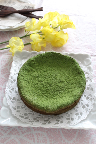 久しぶりに抹茶を使ったスイーツ作りしました。バレンタインはまだ先ですが友チョコにもいい抹茶のガトーショコラです♪ 何度か焼いたのですが、焼き上がったケーキの表面がひび割れしてしまって。ひび割れないように作りたいと思ってたらアルミホイルをかけて焼く事で解決しました。焼き上がりは好みですが見た目はこの方がいいかなって思ってますね。 焼く度に職場の方達や近所のお友達、今来てる外装工事の職人さんなどに食べてもらいながら消費しましたが皆さんにも好評でした♪ 冷めたてはしっとり、翌日は生チョコのよう。抹茶のほろ苦さとホワイトチョコの濃厚さが抹茶好きにはたまらない美味しさです(*^─^*) ★★★バレンタインにも♪抹茶のガトーショコラ★★★★材料 15センチ丸型(底の取れる物)・無塩バター ・・・・ 50g・ホワイトチョコ ・・・・ 80g・生クリーム ・・・・ 30g・卵黄 ・・・・ 2個・卵白 ・・・・ 2個・グラニュー糖 ・・・・ 70g■薄力粉 ・・・・ 25g■抹茶 ・・・・ 10g・仕上げ用抹茶 ・・・・ 適量★作り方準備・型に分量外の溶かしバターを塗り粉をはたいておき底に敷き紙を敷きます。・■印は合わせて振るっておきます。1、バターと砕いたチョコをボールに入れて湯煎で溶かします。2、卵黄とグラニュー糖の半分を大き目のボールに入れて白くもったりするまで泡立て器で混ぜ、 1と生クリームを少しずつ入れてよく混ぜ、■印の粉類も入れて混ぜておきます。3、別のボールに卵白と残りのグラニュー糖を2,3回に分けながら入れて角がピンと立つまで 泡立てメレンゲを作ります。 2のボールにに1/3くらい入れて泡だて器で混ぜてから残りのメレンゲも加え ゴムベラに変えて下からすくうようにして粉気がなくなるまで混ぜて型に入れます。4、3にアルミホイルをかけて160度に温めたオーブンに入れて20分焼きアルミホイルを外し 15分焼きます。 ※時間はオーブンによって変わります 5、焼き上がったらそのまま冷まし、冷めてから型から出し底紙を外し茶漉しで抹茶をかけます。 ふたつのランキングに参加中です、応援クリックしていただけると嬉しいです☆にほんブログ村