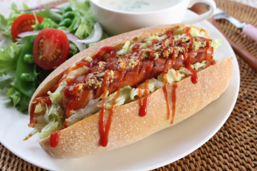 レーズン酵母の元種で焼いた全粒粉入りのコッペパン♪ 形は不揃いでしたが少し大きめのふわもちのコッペパン♪ コッペパン焼いたのはこのドックパンが食べたくなって 笑キャベツを炒めた上に焼いたソーセージをのせて粒マスタードとケチャップかけていただきました。ドックパンと一緒にサラダとカリフラワーが残っていたのでポタージュスープも作りました。 この日は旦那もお休みで朝早くに出掛けるとの事だったので普段はご飯党の旦那ですがドックパン作ってあげたらボリュームもあったので満足してたようでした(。・∀・。) ふたつのランキングに参加中です、応援クリックしていただけると嬉しいです☆にほんブログ村