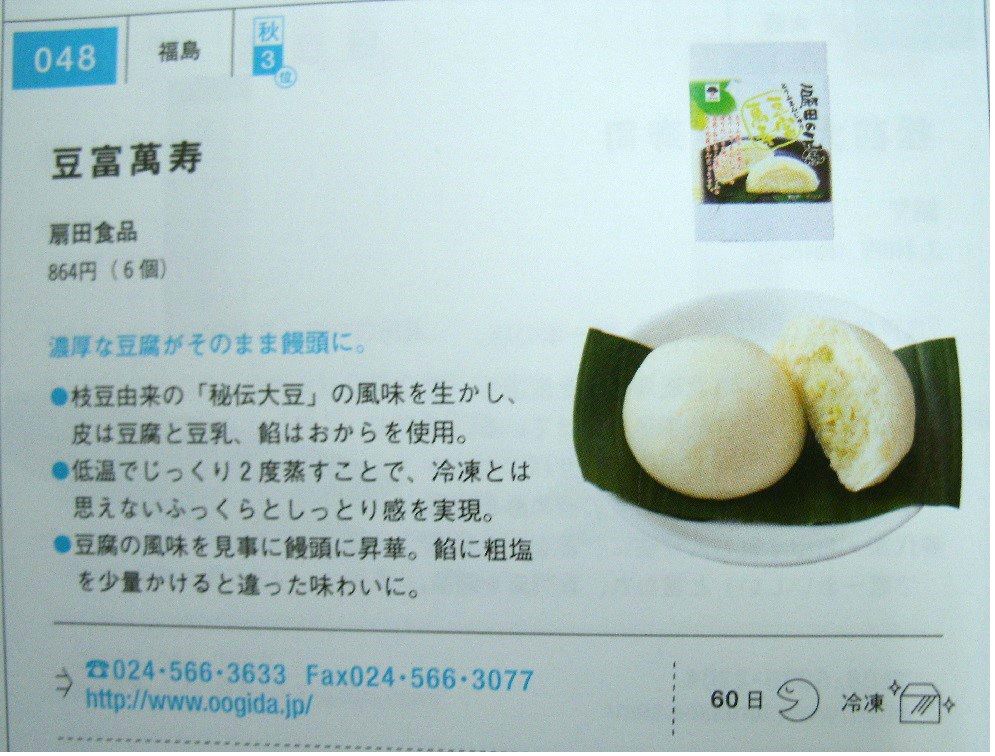掲載された商品は、とうふやおから、豆乳を使用して製造されたとうふまんじゅうです。