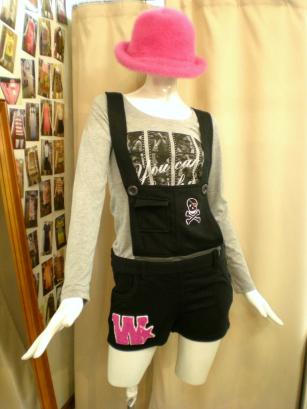 日曜日にも言った通り明日は木曜日だけど営業するよもちろんみんな知ってるよね この前入荷してあっさり売れたサロペットの色違いが入荷したよまだ7月でまだまだこれから猛暑だっていうのにもうかなり秋冬商品売れてるよやっぱお洒落な人は早いね前回はチャコールグレーだったけど今回はBLACKが入荷スカル柄が可愛いね\3,900ロンTも新入荷だよ切れ目が入っていてお洒落\3,990アンゴラHATは\2,940後姿をず~むUPロンTの切れ目が入ってる部分は2重になってるんだ背中は見えないから安心だよサロペットはショーパンにもなるよどうだい?いい感じかい じゃ