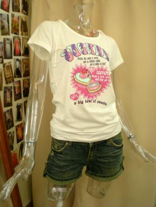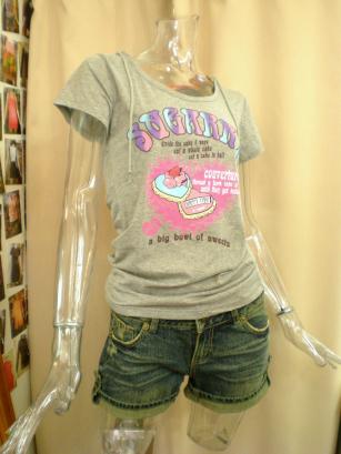 やぁお腹いっぱい”みとぅ”だよそろそろ今日の新入荷ちょっと見せてあげる何?ちょっとってせこいって??写真撮って飾るのって結構大変なんだ”みとぅ”のファンならわかってくれるよねじゃ、いくよデニムのショーパン入荷だよこれはあまり入荷しないメーカーからの一品何かとりあえずSサイズ先行入荷でMサイズは後から入荷らしいよ\4,410前回入荷して即日完売したサマンサTシャツとスカル柄Tシャツの色違いが入荷したよこれも即完売するのかな??\1,995同じタイプのTシャツの柄違いも入荷したよこのシリーズ超売れ線みたいだね\1,995 まだまだ新入荷あるよせっかちな人はお店で確認だねもし時間あったら帽子とBAGとパーカTシャツも入荷してるからUPするね じゃ ”みとぅ”のランキング・チェックが出来るよ^^