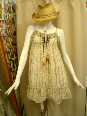 座ってるトルソーでの紹介だよ正式名称ではなく自分だけの愛称でずっと呼んでる物ってあるよねみとぅにとってはこの”座ってるトルソー”がそれ(これの正式名称なんてないかもねただのマネキンかトルソーかな??)そう言えばViVi3月号でもウェスタンが来る!ってみとぅのマネしてたね(言っとくけどみとぅのウェスタンネタはViViからじゃないよ)ちなみにウェスタンの次はミリタリーだよ春はウェスタン→夏はミリタリーだよ(まだViViではミリタリー情報やってないから)キャミワンピ\3,990ウェスタンHAT\2,940アクセ\840この”座ってるトルソー”に着せるとなんか”格”が上がった感じがするのはみとぅだけかな?あっそうそう前回のアンケートの結果このベアワンピ取り敢えず\3,990で打ちだすことにしたよえ?アンケートの結果だと\5,985→\3,990だろうって??今回はこれで行くよ(今ポリシーと時代、世論がみとぅの中で戦ってるんだ)定価がいくらだろうがこの商品は\3,990で売りたい買って欲しい次はわかんないけど・・・・(ちなみに冬物はアンケートを重視してSALE表示させてもらったよみんなの意見がお店を変えた瞬間だよ)へへへ・・・・。 じゃ