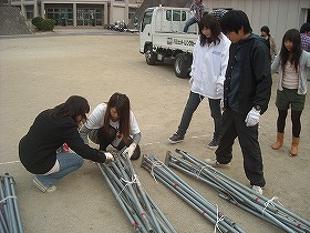 皆さん、鵬祭まで残りあと1日となりました!昨日で3日間続いた近隣の小中学校からのテント借用が終わりましたヽ(*´∀`)ノ キャッホーイ!!それから、報告が遅くなりましたが、グラウンドのテントのレイアウトを決めるグランド計測や本祭の臨時駐車場である魚市場の駐車場設営も、先日、無事に終了致しました(^o^)丿いやぁ‥。この数日間、着実に準備が進められています(^^)v今日はいよいよ!!■メインステージの設営■前夜祭のビラ配り■机などの借用物の搬入■SASEROCKのビールケース下ろし■グラウンドテント設営■体育館のグリーンシート敷きなど、本格的に準備が開始致しますワーイヽ(゚∀゚)メ(゚∀゚)メ(゚∀゚)ノワーイそして、明日は…そうです!前夜祭です!!!前夜祭では、13:00から相浦魚市場にて魚捌き体験!18:15からメインステージで軽音ライブ部による「軽音ライブ」が行なわれます(*^_^*)近隣住民の方々には、騒音等でご迷惑をおかけしますが、どうぞご協力の方、よろしくお願い致しますm(__)mBy こてつ