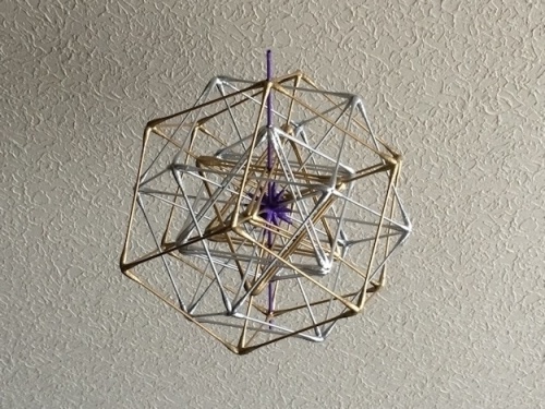 ・・・ 地球開星 ・・・そして、新しい宇宙時代の到来を象徴する形代としてこの造形は生まれた。※関連記事・2014年06月11日 《古くて新しい「統合」へ・・・》⇒リンク造形の内訳は、銀色の構成が「シリウス(6次元)」、そして金色の構成が「アルクトゥルス(7次元)」を象徴しており、この二つの星の象徴が紫色の「中心軸」に統合されて「ひとつ」となっている。それはまるで、日本神話の伝える・・・「潮干珠」と「潮満珠」が和合した「如意宝珠」・・・の印象があったので、『 た か ら 』と命名した。 今まで具現化できそうで叶わなかった造形『 た か ら 』は、いよいよこの6月9日に完成した。この『 た か ら 』は、物事の二元性・・・例えば「陰と陽」・「内部と外部」・「前側と後側」などを、視覚的に「ひとつ」として全体把握することができ、あるいは作品を実際に手で触れて体感する行為を通じて【本当の自分】に気づいていく、その「手懸かり」となれば嬉しい限りである。